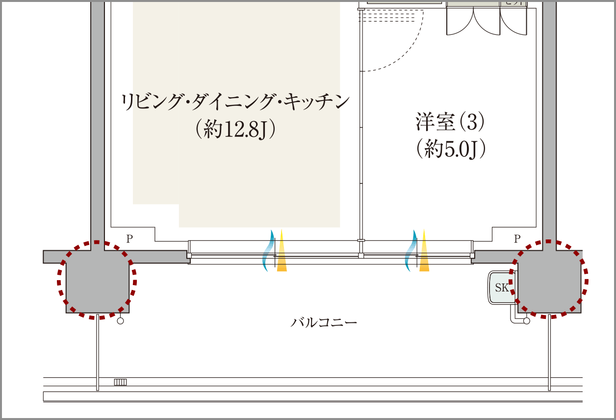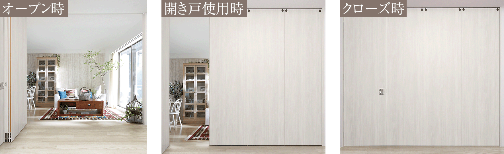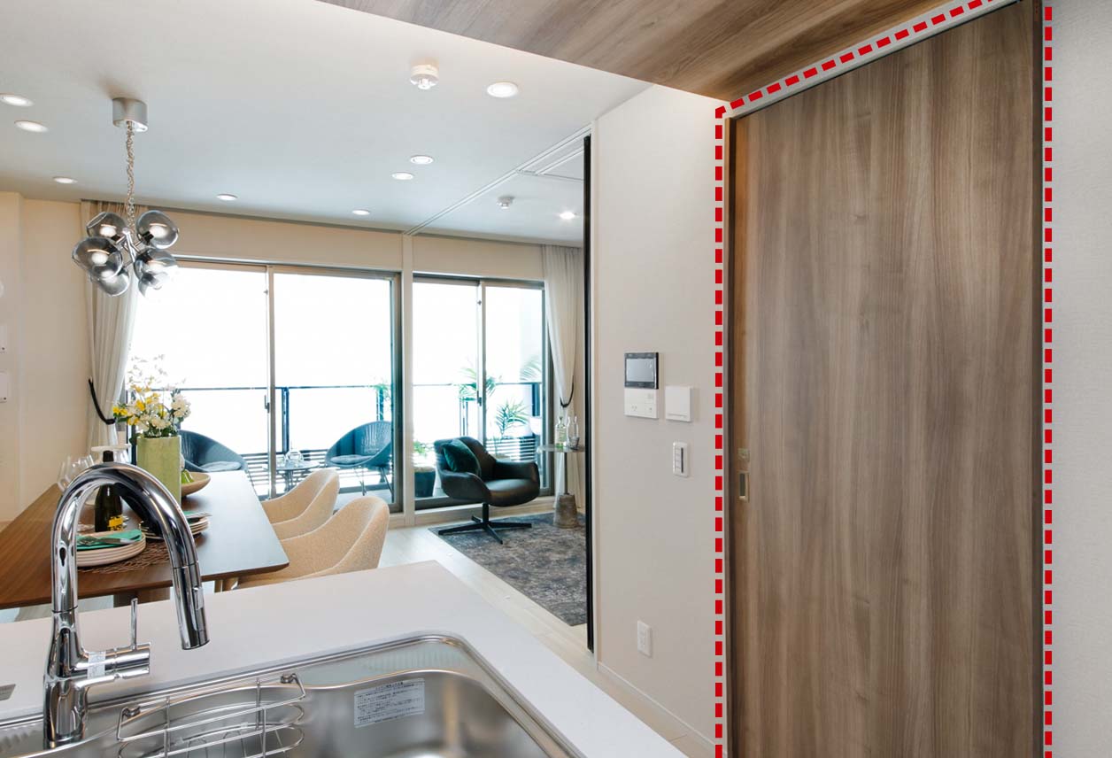 リビング・ダイニングには、間取りをフレキシブルに変更できるウォールドアを採用。開放することで広々としたリビングに、閉めれば在宅ワークの個室など自由にアレンジできます。