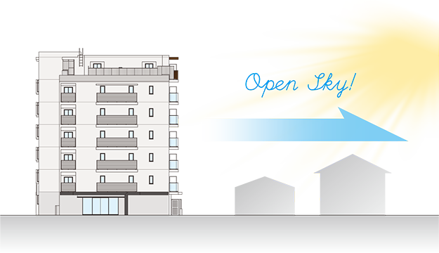 「ガーラ・レジデンス横浜港北」の目の前に広がるのは、開放的な空と眺望。毎日の暮らしの中で、空とつながる伸びやかな日常がここにはあります。
