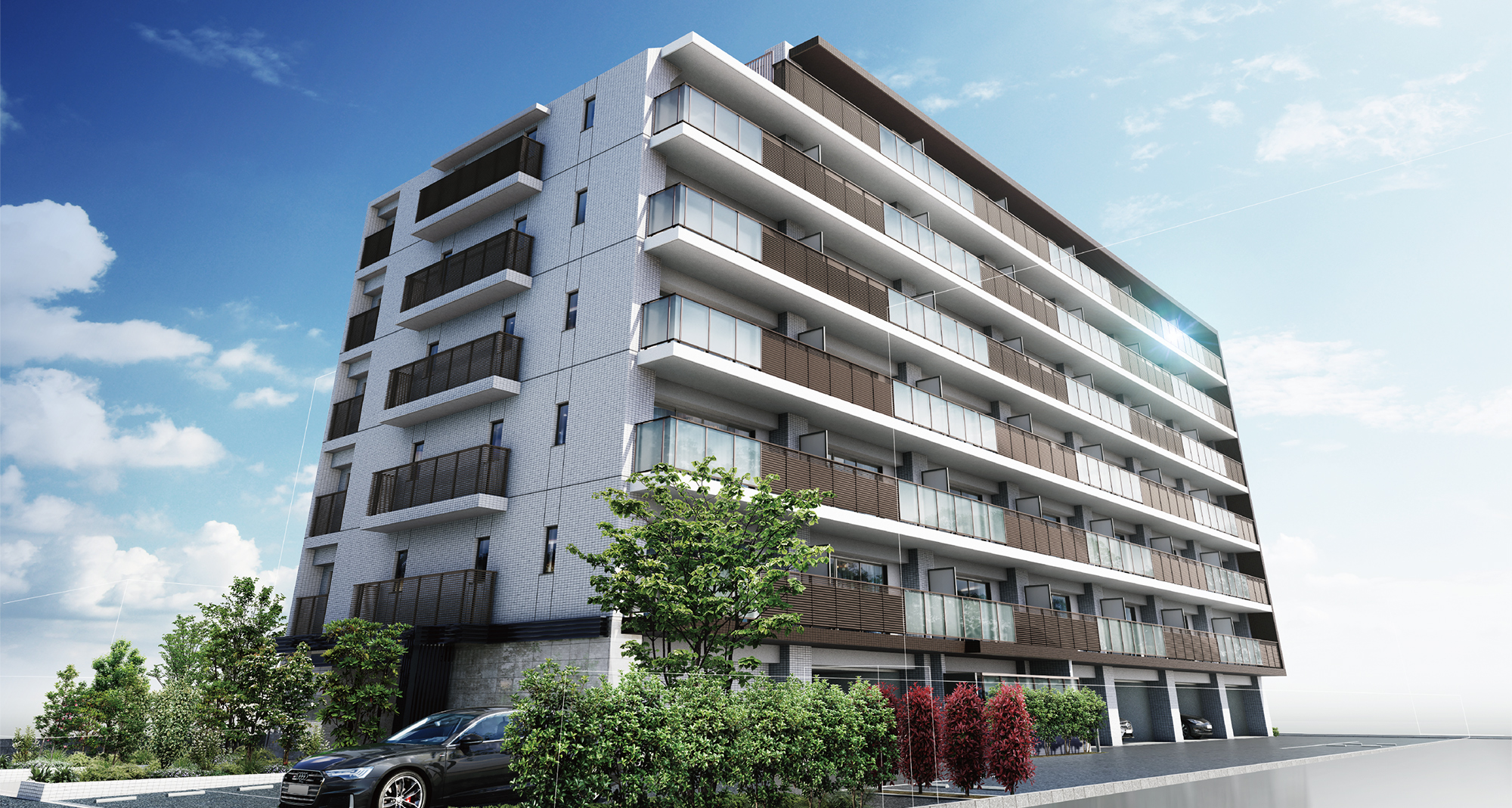 住まいとしての価値を印象付けるのは、繊細で豊かなデザイン性です。例えば、ブラウンのアルミルーバーと乳白色のガラスパネルの美しい対比が醸し出すバルコニー。さらに、マテリアルにもこだわりを持ち、上質感を演出します。四季折々の植栽に彩られるランドスケープも、住まう人を心地よく迎える上での大切なエッセンスです。新しい街で、自分らしく悠々と生きる人たちにふさわしい住まいを連想させます。