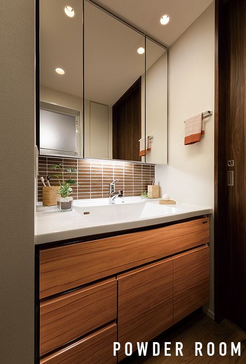 パウダールームには、バスタオルやシャンプーなどのストックに最適な収納スペースを設けました。(C・Cgタイプを除く)