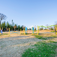 芝生が広がる気持ちの良い開放的な丘に、お子さまが喜ぶ様々な遊具を配置。