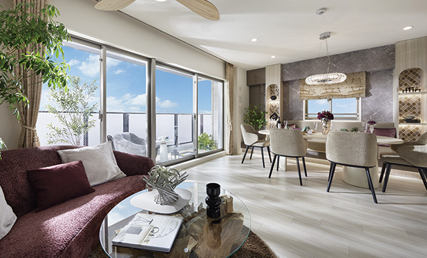 ※各種セレクト・オプションには申込期限がございます。階数により期限が異なります。詳細は係員にお尋ねください。※品番、商品名、色合い、素材等は、メーカーの都合等により変更となる場合がございます。※写真の色は閲覧環境により異なります。予めご了承ください。実際の色はマンションギャラリーでご確認ください。※掲載の写真はモデルルーム(Eタイプモデルルーム仕様)を撮影(2025年6月)したものに一部CG加工を施したもので、家具・調度品等は販売価格に含みません。また、タイプにより仕様・形状等は異なります。※天井高や柱・梁等の構造体、段差やその他設備等が一部再現できていない場合がございます。予めご了承ください。