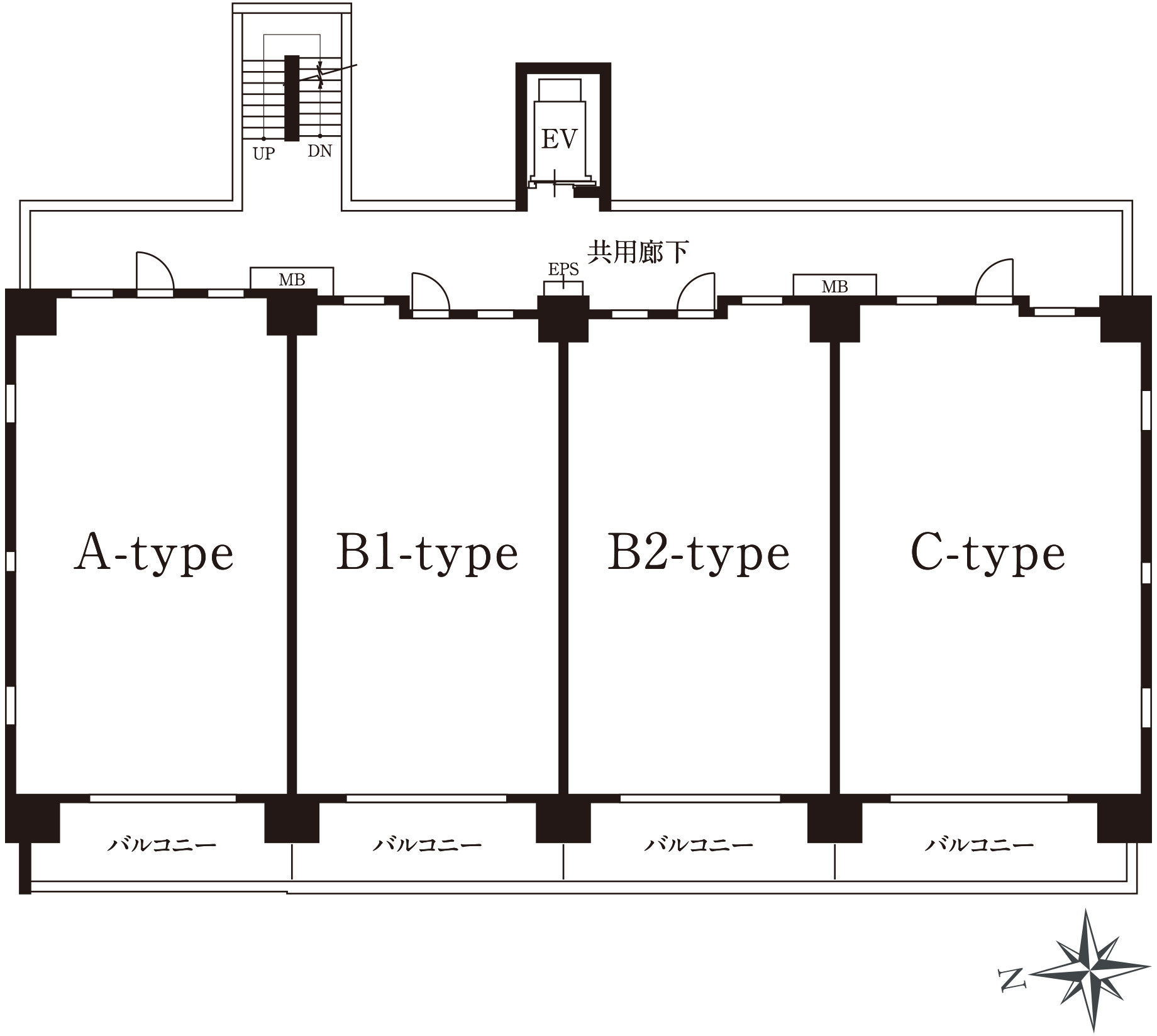 1フロア4住戸の構成でプライバシーと開放感を追求。