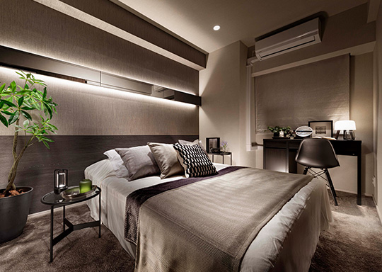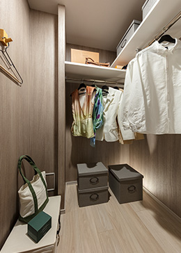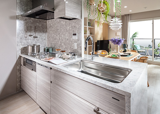 ※掲載の写真はモデルルーム(B1タイプモデルルーム仕様)を撮影(2025年9月)したものに一部CG加工を施したもので、家具・調度品等は販売価格に含みません。また、一部有償オプション・インテリアオプションを含みます。天井高や柱・梁等の構造体、段差やその他設備等が一部再現できていない場合がございます。予めご了承ください。