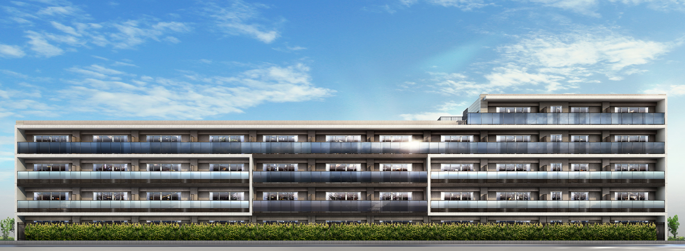 豊かな陽光を浴びて輝く地上5階建て・全52邸の