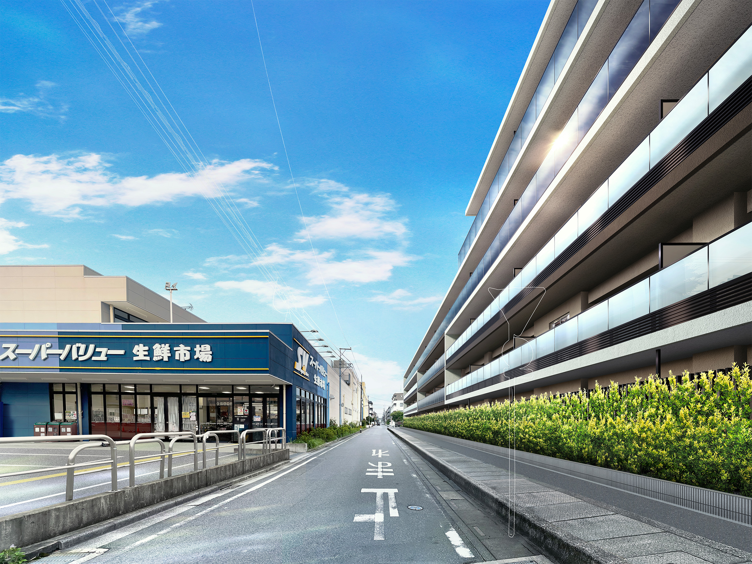 計画段階の図面を基に書き起こしたものに現地周辺写真(2025年9月撮影)をCG合成したものであり、実際とは多少異なります。
