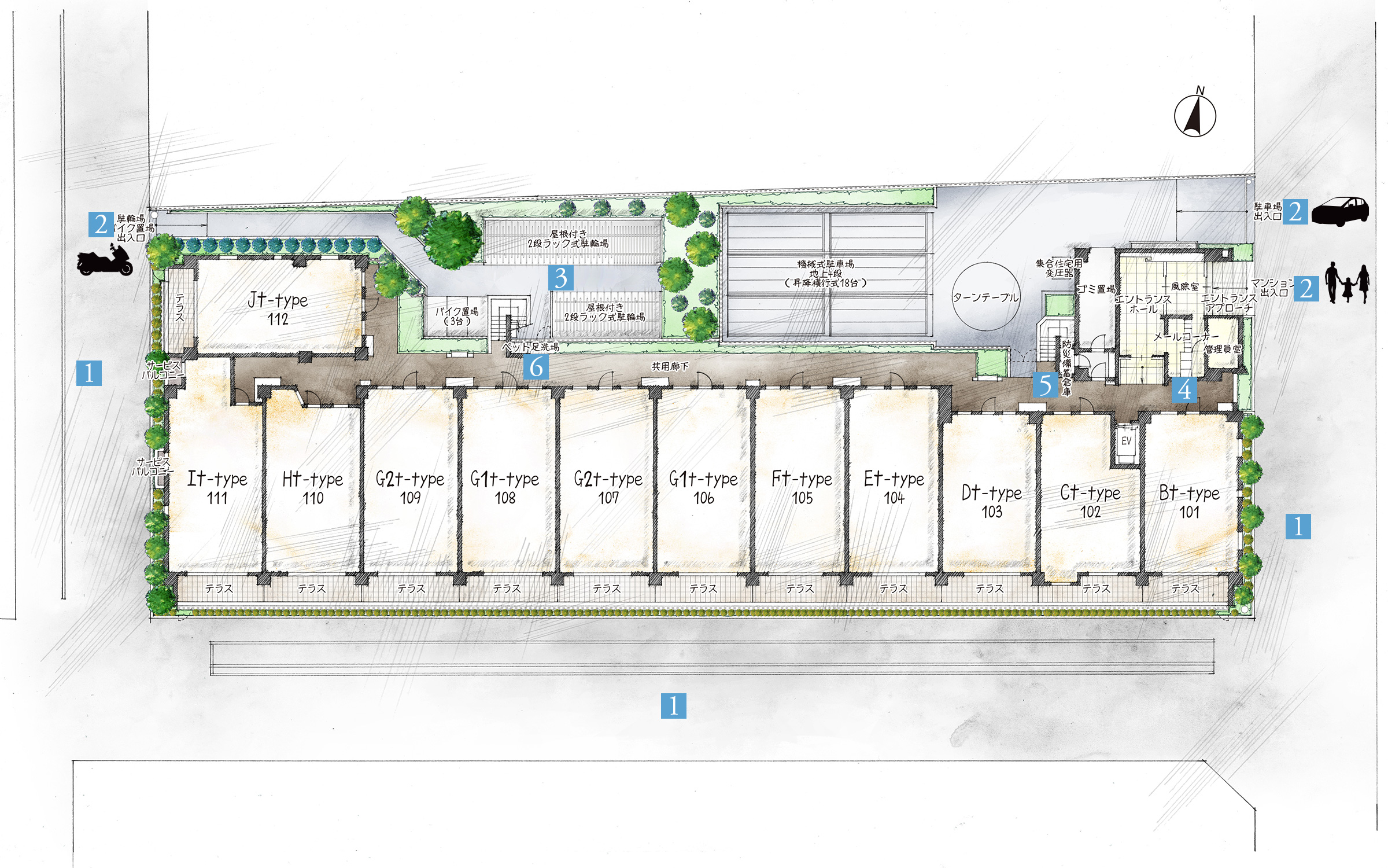 ※掲載の植栽計画は計画段階の案であり、今後植樹が変更となる場合があります。