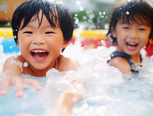 子どもが大よろこびで遊べるプールをお庭に出せば、夏の楽しい思い出に。思いきり水でバシャバシャしてもわが家なら大丈夫!リビングで子どもの姿を眺めながらくつろぐ時間も幸せです。