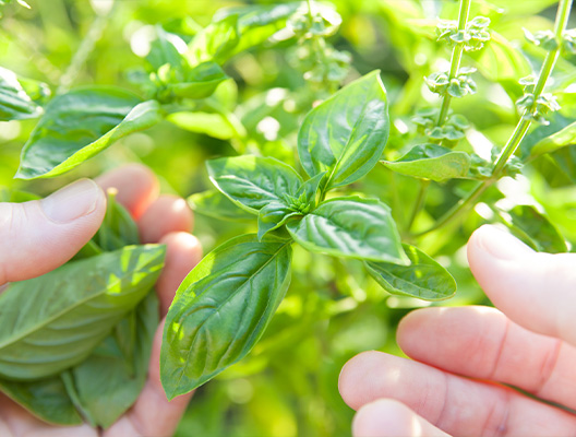お庭にヘルシーな家庭菜園をつくってみては。オーガニックな新鮮野菜を使って、食卓も彩りいっぱいに。毎日苗木のお手入れをするのも、愛着が湧いて楽しみです。