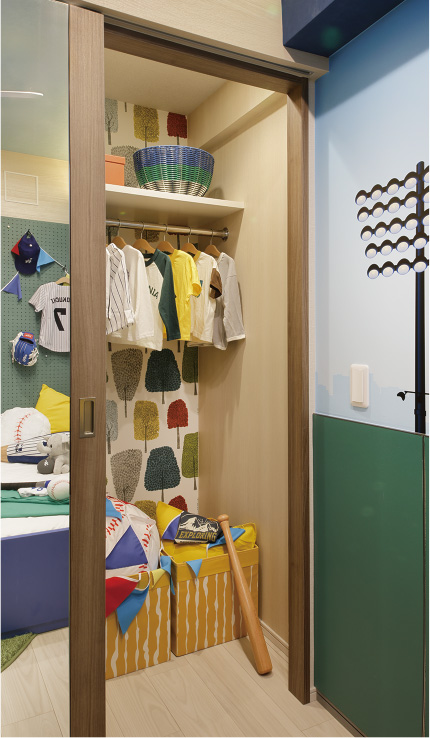 衣類はもちろん、バッグや季節用品もしっかり収納できるウォークインクローゼットを採用。余計な家具を置かずに空間をすっきりと片付けられます。