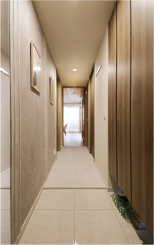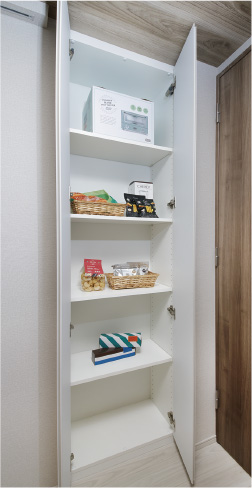 リビング収納※掲載の完成予想CGは、計画段階の図面を基に描き起こしたもので、実際とは多少異なります。また、今後変更となる場合があります。植栽については特定の季節の状況を表現したものではなく、竣工時には完成予想CG程度には成長しておりません。