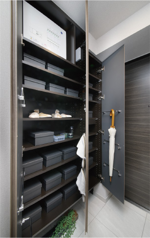 ウォークインクローゼット/サービスルームリビングや玄関といった散らかりやすい場所にも、機能性と収納力を備えた便利な収納をご用意しました。掃除機や日用品のストック、かさばる靴箱などをきれいに整理して生活感を減らし、空間をすっきりと保つことができます。
