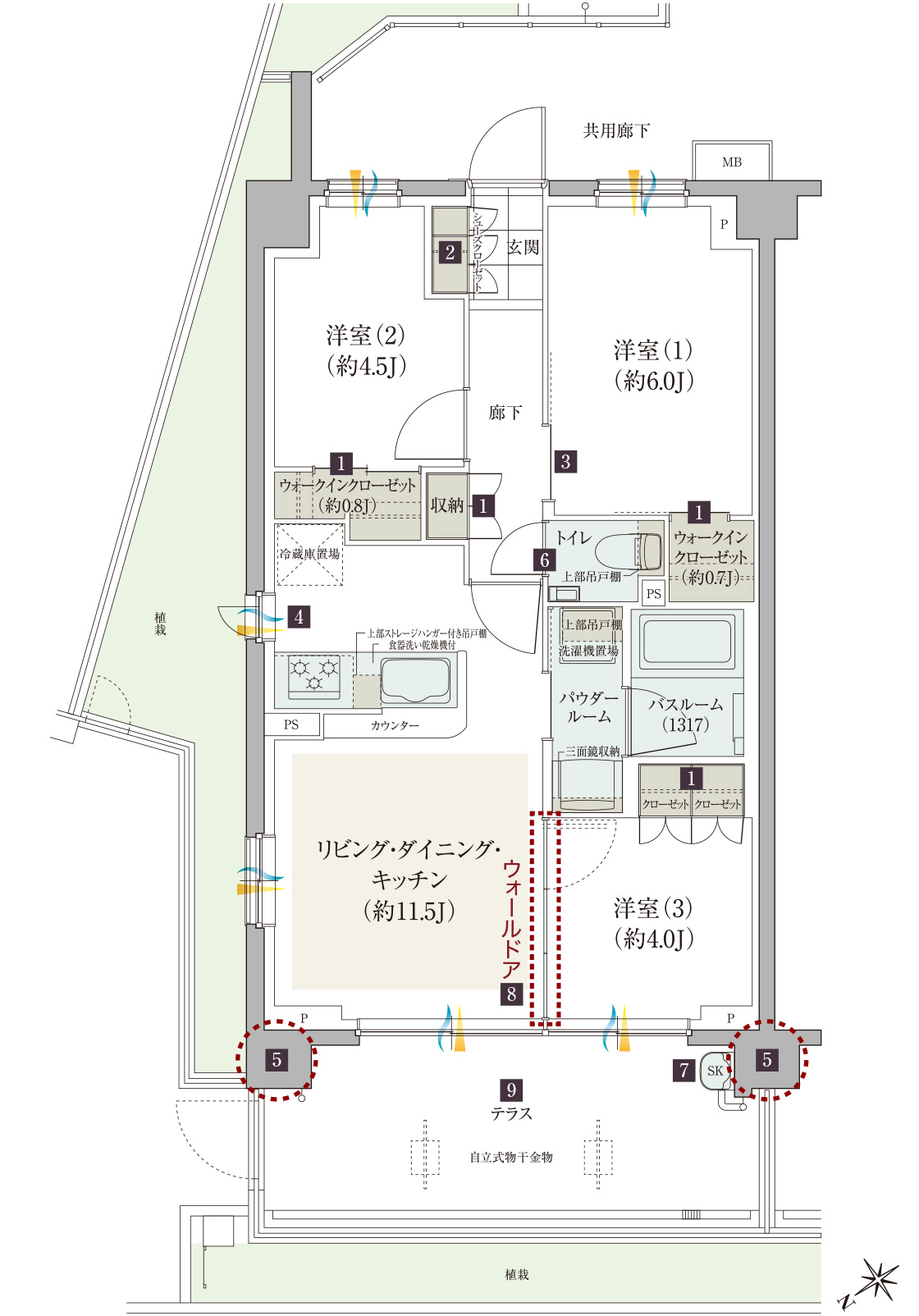 〈A1tタイプ(101号室)3LDK+2WIC〉